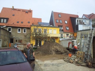 Erdaustausch für ganz Harte: 100 Tonnen haben mein Gatte und mein Onkel mit einem kleinen Bagger und einer Schippe aus dem Garten in Container geladen. 100 Tonnen hornalter Erde mit Bauschutt und Betonresten, Scherben und und und.