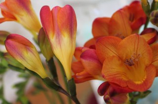 Auch aus Afrika stammen eigentlich die Freesien, neben den Ranunkeln meine Lieblingsblumen, weil sie einfach herrlich duften – zu mindest die farbigen Sorten. Das Wasser in der Vase lieber nachgießen statt gänzlich frisch einfüllen, dann halten die zarten Freesien länger.