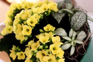 Ein Geschenk war dieses Arrangement mit einer gelb blühenden Kalanchoe (wen wundert’s: stammt auch aus Afrika) und einer Keine-Ahnung-was-das-ist-ist-halt-grün-weiß. Manche Kalanchoes kann man wohl sogar ins Beet pflanzen, das habe ich aber noch nicht ausprobiert.