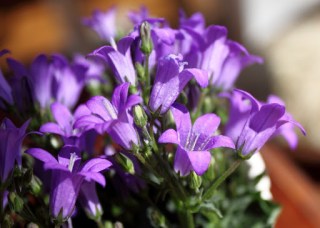 Ebenfalls ein Geschenk ist diese Glockenblume, die eigentlich erst ab Juni blüht. Uns erfreut sie schon jetzt mit wundervollen kleinen lila Blüten. Sie soll hell, aber nicht sonnig stehen und immer feucht gehalten werden.
