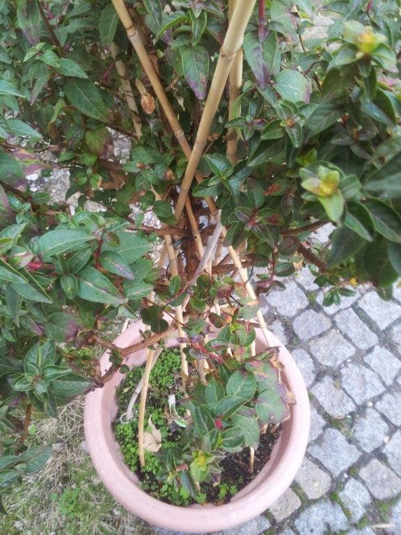 Wieso muss denn das Bäumchen auf so stabile Art und Weise gestützt werden, das erschließt sich mir nicht ganz? Mein Fuchsienstämmchen hat nur einen Stab als Stütze?