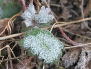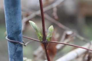 Die Clematis schert sich nicht um den Frost, sondern treibt schon aus.