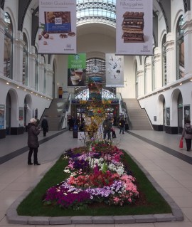 Eins weiß ich aber – die Blumenbeete in der lichtdurchfluteten Halle sind wunderschön. Blumen gegen Gewalt!