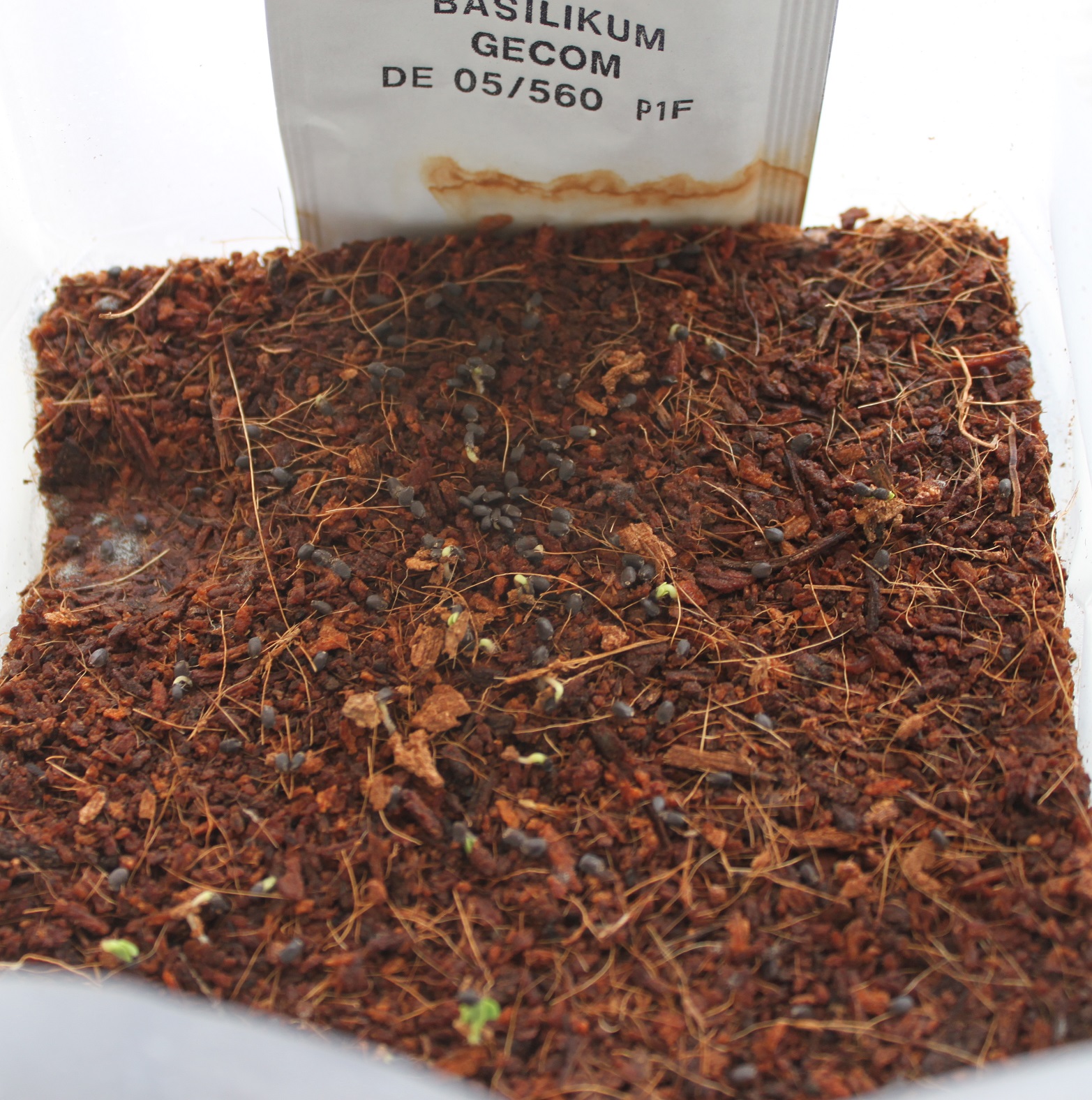 Samen aufstreuen (hier Basilikum) und etwas andrücken…