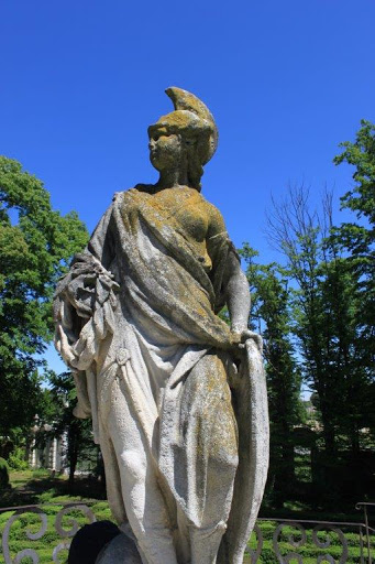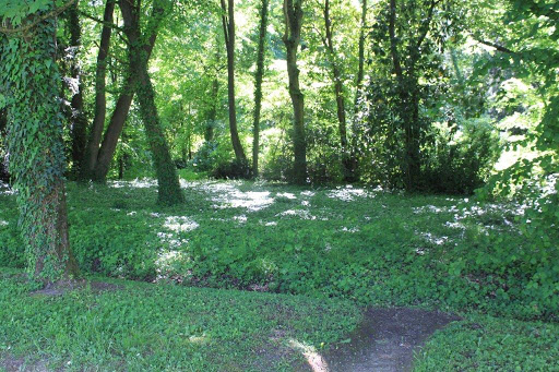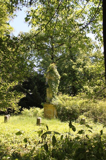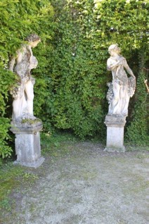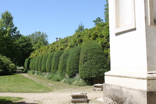 Der westliche Teil des Grundstücks wird seit Napoleons Zeiten vom einem waldartigen Landschaftspark eingenommen. Hier wandelt man unter alten, hohen Bäumen und entdeckt immer wieder aus mossbewachsene Skulpturen und besondere Pflanzen.