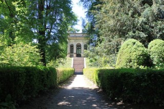 Das Kaffeehaus über dem Eiskeller. Auf einem kleinen Hügel gelegen, erinnert es in mancher Perspektive an das Luisium im Dessau-Wörlitzer Gartenreich. Der italienverliebte Fürst Franz von Anhalt-Dessau hatte es für seine Frau errichten lassen