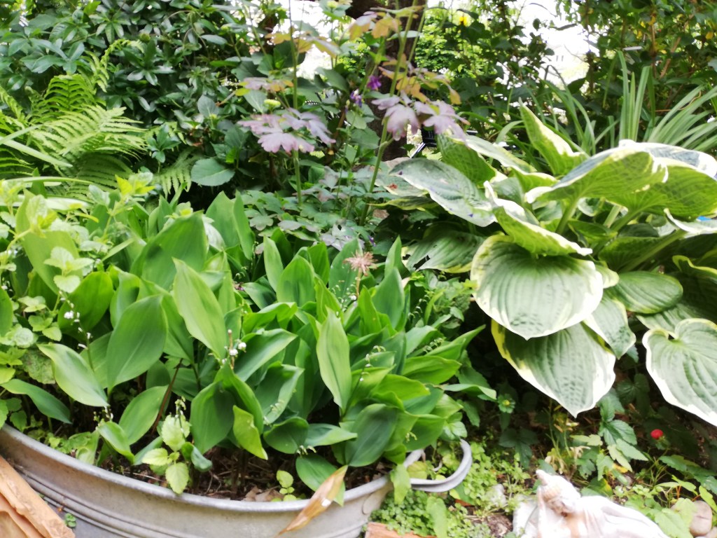 Ein paar Farne, spezielle Veilchenarten, wie „Freckles“ und „Rubra“ und Funkien dürfen natürlich nicht fehlen.