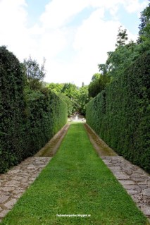 Irgendwann betrittst du die Hauptallee, jedoch nur, um links und rechts davon weitere Überraschungen zu entdecken, die dieser Garten für dich bereit hält. Das berühmte Buchsbaum-Labyrinth etwa…