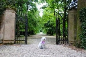 Der Garten ist täglich von 10 bis 13 Uhr und von 14 Uhr bis zum Sonnenuntergang geöffnet. Hunde sind erlaubt, wenn sie nicht zu groß sind, wenn sie an der Leine gehen und sich benehmen. Wir haben vorher per E-Mail angefragt und schnell eine Antwort erhalten, die ich ausgedruckt und vorgezeigt habe.