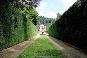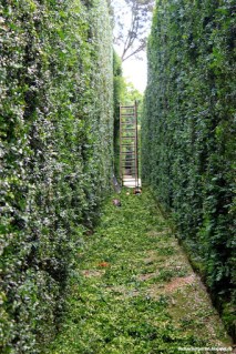 …. Du schaust nach rechts und dein Blick verliert sich zwischen den langen Eibenhecken …