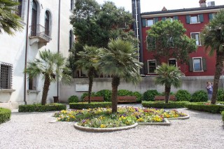 Wir sind also losgefahren und unser Navi führte uns brav in die Via Carlo Alberti. Bei der Hausnummer 1 handelte es sich jedoch offensichtlich um das Rathaus, das auch in einer wunderschönen Villa untergebracht war, jedoch nur über einen kleinen Garten verfügte und also nicht unser eigentliches Ziel sein konnte. Es waren Bürgermeisterwahlen, Gesang schallte aus den Rathausfenstern und nach dem ersten Tag Italien sprach ich noch nicht annähernd gut Italienisch, um nach dem Weg zu fragen. Also hielt ich meinen Adresszettel einer Dame in der Gelateria am Markt hin und wir versuchten, aus der dann von ihr sehr ausführlich und sehr freundlich formulierten (italienischen!) Wegbeschreibung schlau zu werden. Und ja, es gelang. Die Villa Venier ist nämlich innerhalb des Ortes recht gut ausgeschildert, das hatten wir aber bei unserer Fahrt in den Ort vor Nervosität einfach nicht beachtet.